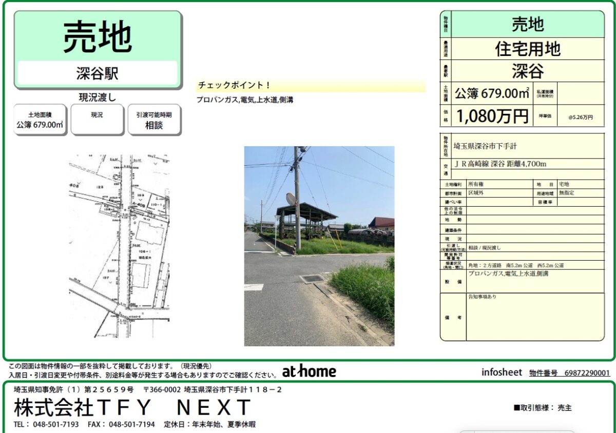 株式会社 TFY の社屋の斜前の土地 205.39坪 角地を販売しております。こちらの土地は 弊社売主物件となっております。 南西角地の土地で 陽当たりも良く 都市計画区域外 無指定地域の土地で 地目も宅地です。 ご利用計画にもよりますが 開発許可 農地転用手続きも不要で すぐにでも着工できます。 広い土地に住宅と仕事場 投資目的としてアパートや貸家を建てる 蓄電池用地や分譲住宅など 幅広く利用できる土地です。諸条件等もご相談に応じますので是非 ご検討ください。