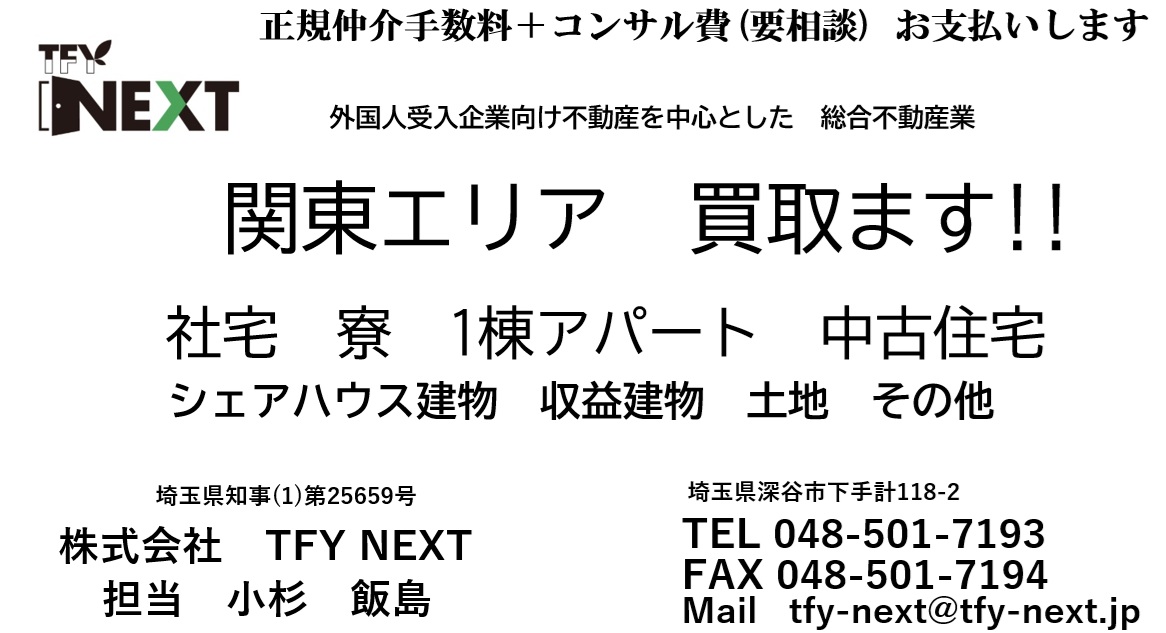 不動産所有者様 不動産仲介会社様 TFY NEXT 買取強化中です!!